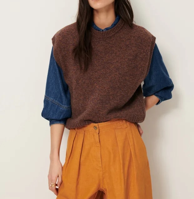 Jersey sin mangas en lana merina moteada.