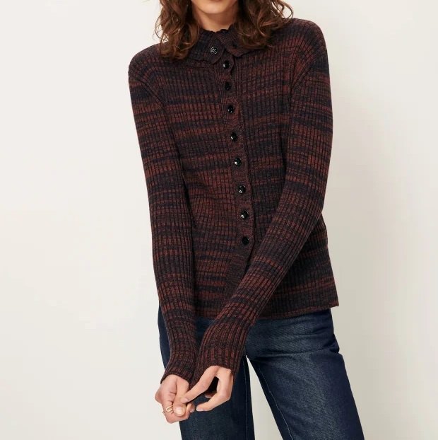 Rebeca en punto acanalado realizado con hilos moteados y degradados.